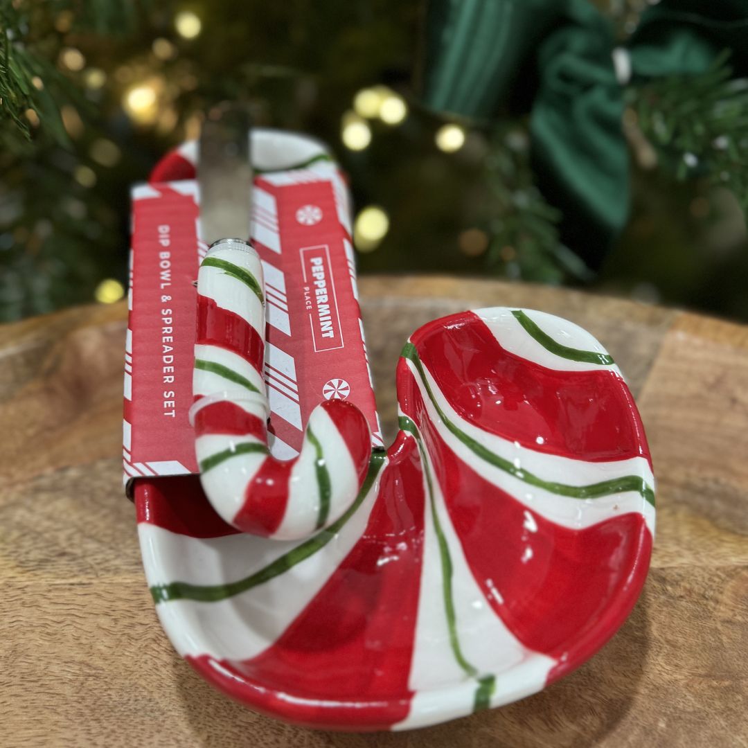 Add a sweet holiday touch to your charcuterie spread with the Holly and Moss Candy Cane Shape Dip/Spread Bowl with Spreading Knife. Perfect for serving dips, spreads, or holiday treats, this festive bowl and knife set is both practical and decorative, making it a must-have for holiday entertaining.