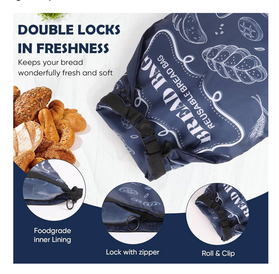 Keywords: Reusable Bread Bag, Double Lock Fresh Technology, Sourdough Storage Bag, Eco-Friendly Bread Preservation, Food-Grade Bread Freezer Bag, Large Bread Storage Solution.