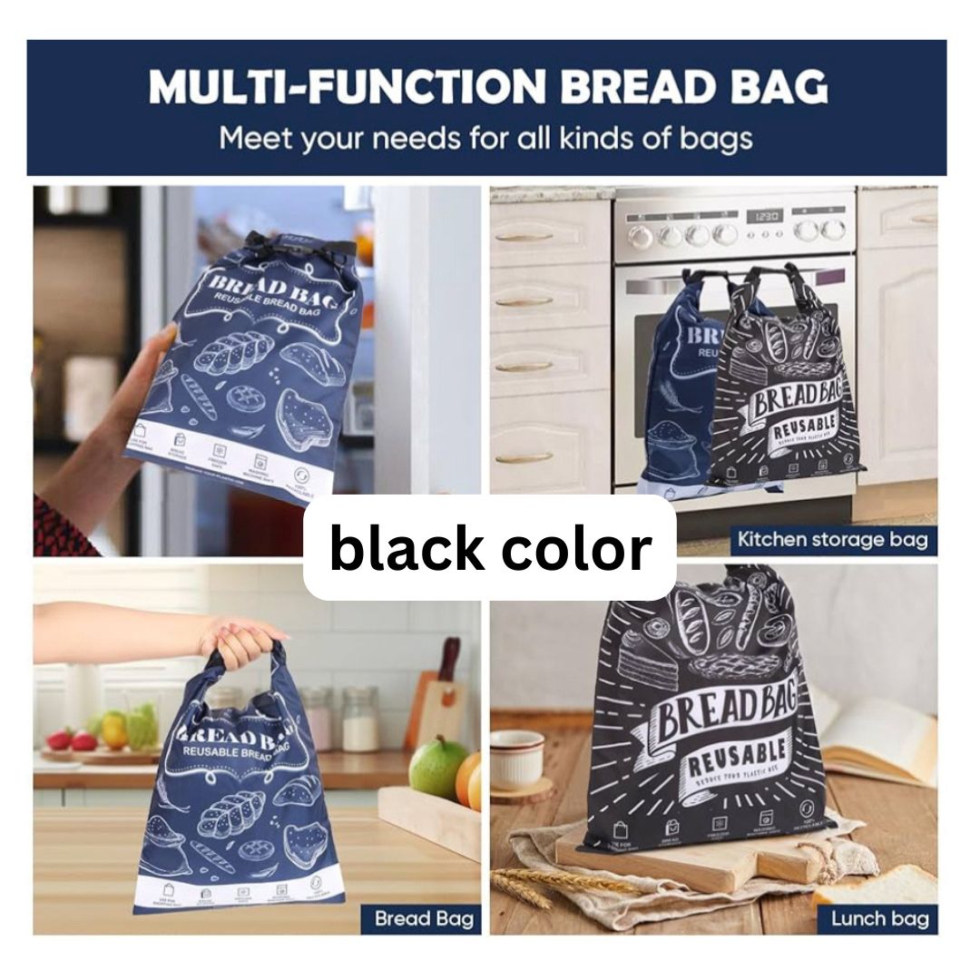 Large Black Reusable Bread Bag with Double Lock Fresh Technology
